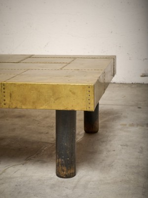 Coffee table with brass inlay top Close to the work of Lorenzo Burchiellaro