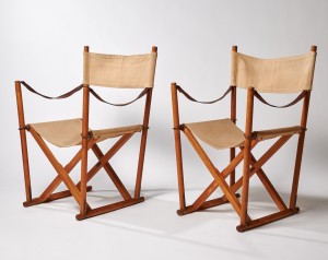 An original pair of folding chairs model "MK-16", manufactured by Rud Rasmussen, Copenhagen