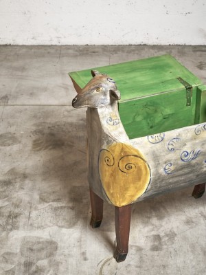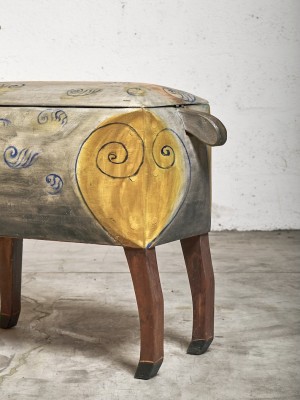 Hand carved and painted chest, unique piece, France